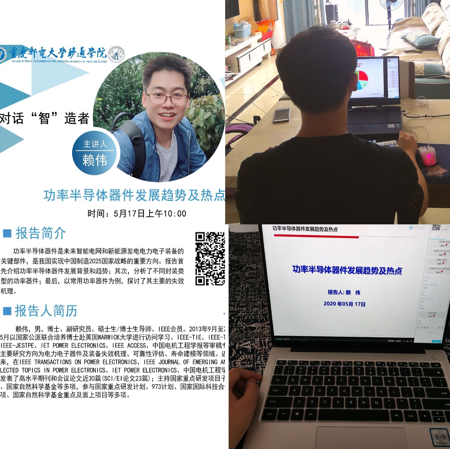 5月,智能工程学院持续重视大学生对自身专业领域的深入认识,联合高校教师积极开展讲座活动,旨在为智能工程学院全体师生带来多渠道的学习机会。对话“智”造者系列活动邀请到重庆大学赖伟教授云端讲解“功率半导体器件发展趋势及热点”。拓展多维视角,共创智工探寻之路。