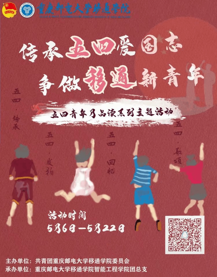 结合我校“四位一体”办学理念,以“共话五四”为主题,深入推进爱国主义教育,传承并弘扬“爱国、进步、民主、科学”的五四精神,以品读的方式发出移通新青年爱国之声,让青春之花在人民最需要的地方绽放。5月,智能工程学院推出“传承五四爱国志、争做移通新青年”五四青年月系列活动,活动通过“五四·传承”“五四·发扬”“五四·回忆”“五四·歌颂”四个主线展开,在纪念五四运动基础上,丰富青年团员的业余文化生活,引导广大青年学生勇做时代先锋,鼓舞广大青年在奋斗中释放青春激情、贡献青春力量、展示青春风采,把握正确的人生导向,唱响时代主旋律。