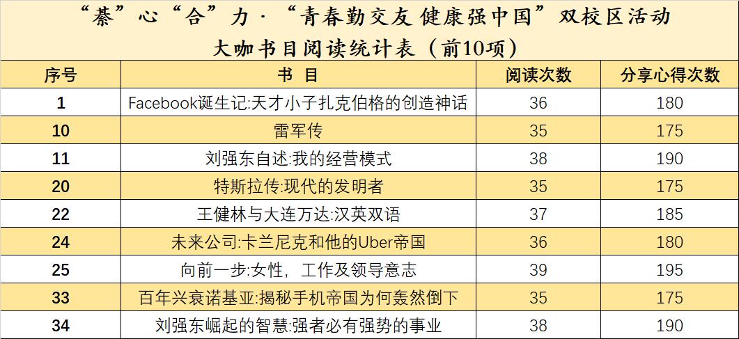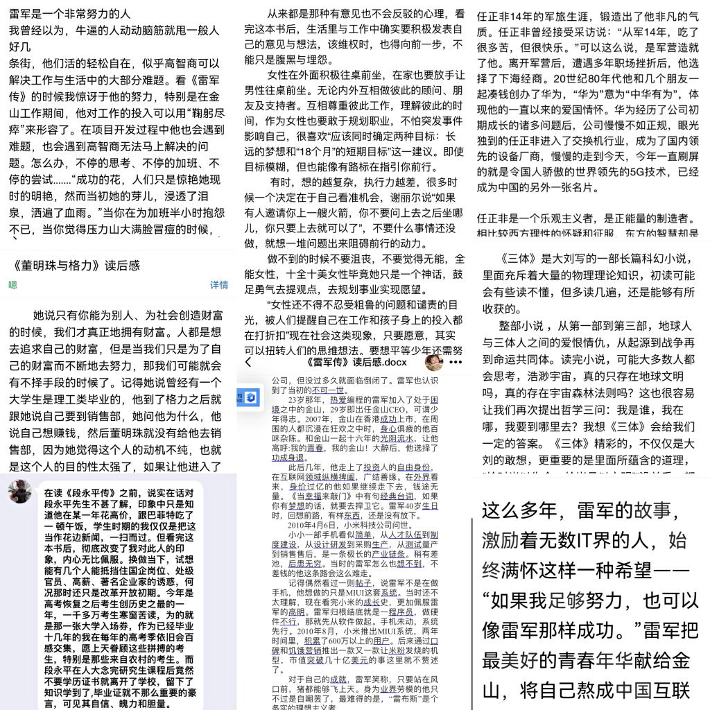 全校师生参与的“信息产业大咖传记阅读计划”,让学生更具商业知识和才能,双校区学子跨空间展开大咖阅读线上对话,成为了书院伴读工作的又一特色举措。在大咖书籍中启发、感悟、知晓、明理,由学生自主发起和践行,充分发挥圈层效应。读一本好书,就是同众多高尚的人谈话,双校区学子按照大咖书籍清单,和搭档互相分享阅读大咖书籍的心得与内容,用笔尖记录阅读,用文字传递思考。