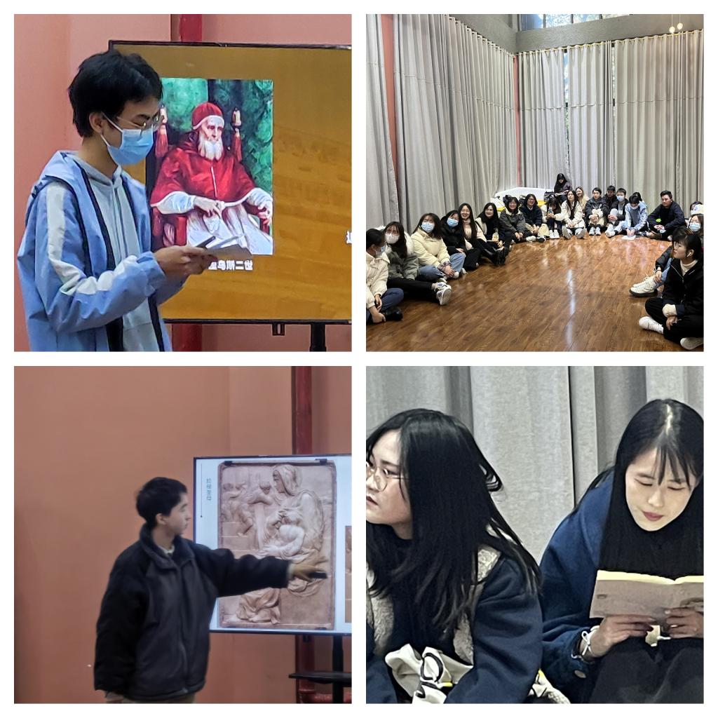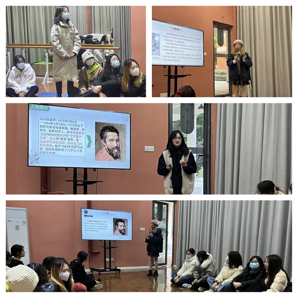 11月24日下午,通识教学部黄揽月和单旭燕老师与30余名同学齐聚在别都书院排练厅,师生共赏罗曼•罗兰之经典名著——《米开朗基罗传》。该活动旨在让同学们充分利用书院平台,开展课程《欧洲文明的现代历程》的“第二课堂”,激发学生学习兴趣,促使学生多视角分析文艺复兴巨人的奇妙之处,从而使学生更好地理解近现代欧洲文明。