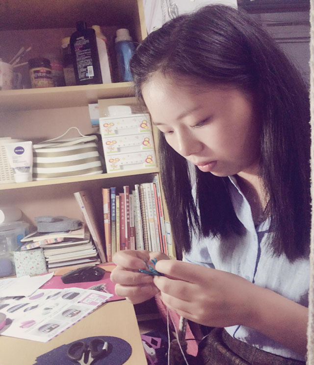 高中的时候第一次绣十字绣。那时候就是觉得好玩,但是同学们都很喜欢我的作品,所以在他们的鼓励下我就开始买工具、买材料,尝试着做各种不同的手工品。