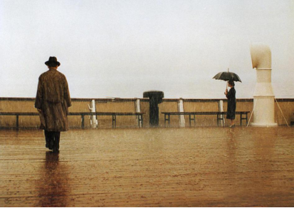 在小说中,总会有一个词去形容一种人——天才。在我看来,1900未必不是一个钢琴天才。他孤独深沉,浪漫而又充满幻想。他似乎自成一个世界,用八十八键描绘人间。我愿意称呼他是大海生养出的音乐孤魂,随着船只漂泊流浪,他身世传奇,琴技精妙,人们吹捧他、热爱他,但又会因为船靠岸转瞬间抛弃他。任他孤寂寥落,再无人问津。这是他命运悲剧与性格悲剧使然,但与其他悲剧人物不同的是,他有一种独一无二的高贵感,这种高贵感赋予了影片荒诞与绝望的色调,让1900的人物鲜活分明,整体故事却又似真似幻。我曾阅读过《海上钢琴师》的原著小说,我能感受到他的浪漫,但影片在人物形象塑造时,又为1900增添了一抹神秘与高傲,他用钢琴去描绘人物,抒发感情,幻想未知。