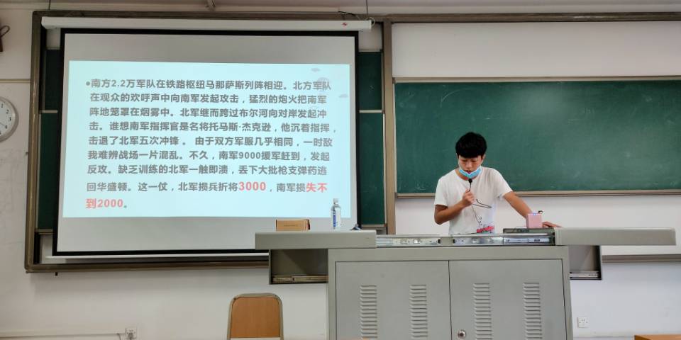 电气自动化技术星耀2班七组选择了本小组同学们感兴趣的主题:美国南北战争。这组的PPT制作简单明了,选择的主题为具体的历史事件,相较于上一组汇报更明确具体,小组的分工也更加明确合理。