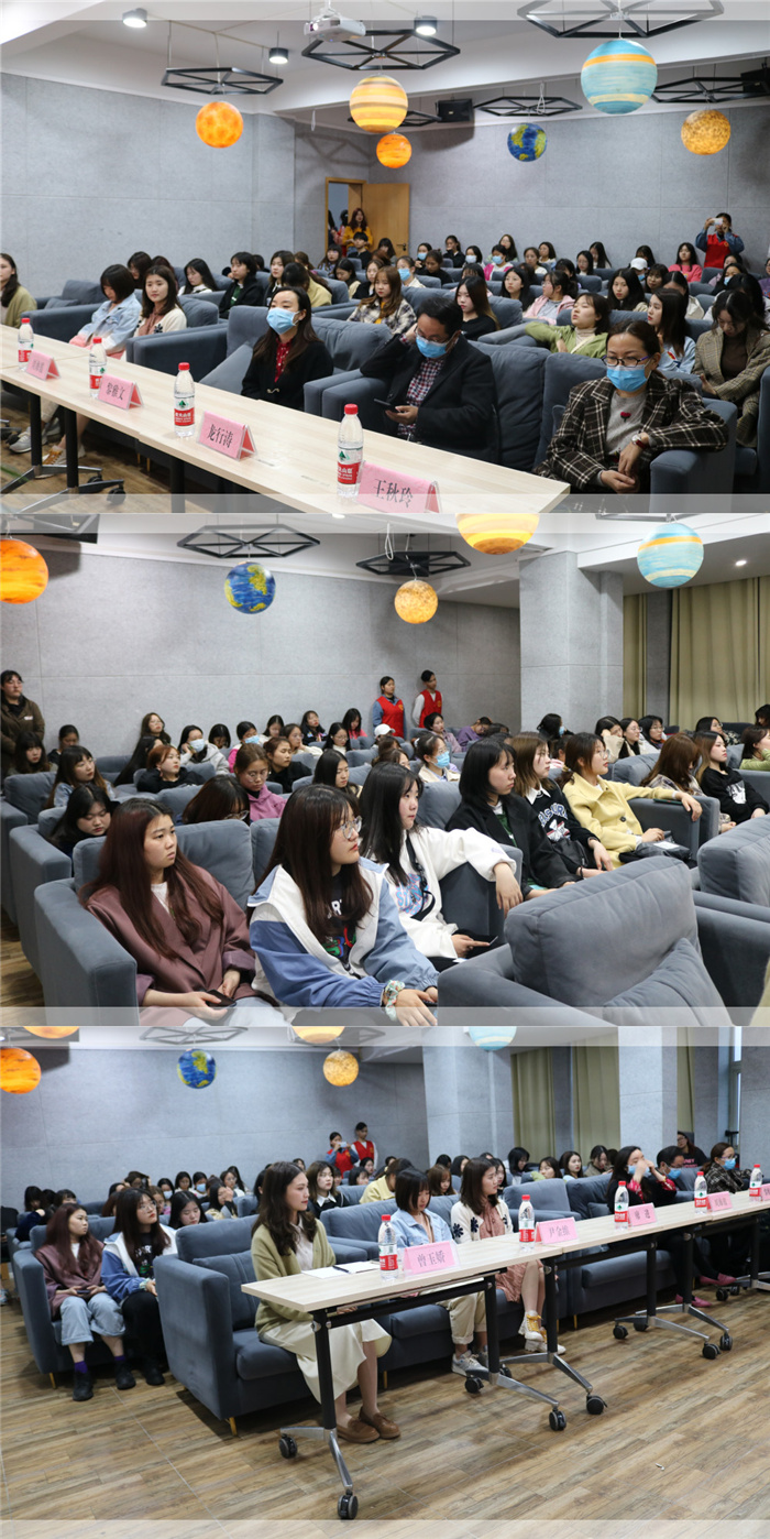 2021年3月24日晚,由淬炼商学院“SHE”关爱女性志愿服务专项支队主办的“HPV和宫颈癌那些事儿”主题讲座在汇江书院影音播放室成功举行。本次活动特别邀请到合川区中西医结合医院妇产科主任龙行涛、副主任王秋玲、对外联络科科长黎雅文以及配镜中心的刘海霞莅临现场为同学们讲解知识,淬炼商学院学生党支部副书记尹金维、艺术修养与实践板块指导老师廖进、志愿服务板块指导老师曾玉娇也出席了本次讲座。