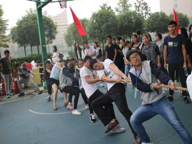 团队一心的力量支撑着团队的胜利。压轴大戏是拔河大赛,也是最能体现团队精神、考验团队合作的游戏。红令旗垂立在赛场中央,如一个公正的天平,评判着双方的实力。号令如战鼓般敲响,大家的心如同一把火一样,飞舞燃烧。嘶吼声和助威声交叉在一起。双手摩擦着粗糙的麻绳,忍受着不可明说的撕扯感,但没人畏难,更无一人放弃拼搏。秉承着友谊第一,比赛第二的比赛宗旨,胜利与失败不再是判断优秀与否的判决依据。从始至终,全体成员都未忘了此言。