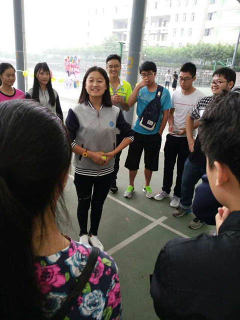 第一个特色的游戏是“直呼其名”。七个队伍的成员全部打散,按照自己的序号去寻找新的游戏团体。每个队伍的成员分别向左边传球并说出自己的姓名,重复两遍。之后通过是否准确说出他人姓名作为游戏胜负依据。简明的规则,有趣的方式。每队成员通过这个游戏认识了更多朋友,增进了彼此感情。
