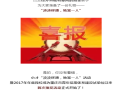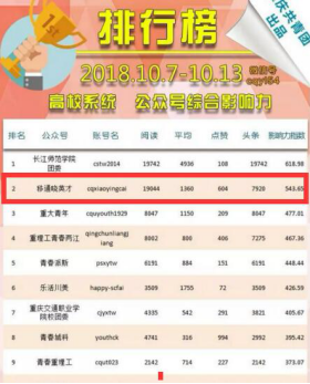 7.【完满教育官方微信公众号平台排名靠前】本年度,我校完满教育官方微信公众平台“移通晓英才”阅读量持续上升,其中,稿件最高单篇阅读量11237次,在全国普通高校团委微信公众号综合影响力排行榜最好成绩第37名,在全市高校共青团微信平台排行榜长期稳定在前5名,最好成绩第2名,综合排行遥遥领先同类型高校。11月,“移通晓英才”首次联合“青信”商家开展以弘扬诚信精神为主题的“泱泱移通,独宠一人”大型网上抽奖活动,吸引近60家商户和5000余名在校学生进行网络互动。
