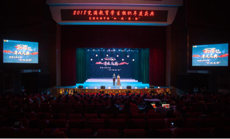 4.【五四青年节表彰晚会】5月,五四青年节表彰晚会成功举办,晚会创新设置“新时代·对话青年成长”“新思想·传颂榜样力量”“新目标·汇聚支部梦想”“新征程·共筑团学辉煌”四个篇章,并分别对2017年度优秀共青团员、优秀共青团干部、优秀学生会干部、完满·达人、完满·力量、完满超级团支部、十佳五四红旗团支部、五四红旗团总支、优秀院系学生会、优秀学生科技协会等9个集体、85个团支部、977个优秀个人代表予以表彰,对全校树立先进典型,进一步推动共青团工作更好发展提搭建了舞台。