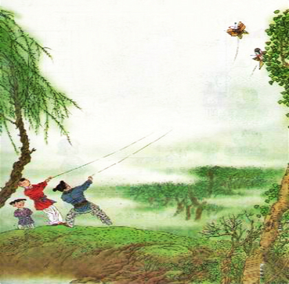 和洵的春风轻拂而过,各式各样的风筝在蓝天里翱翔,它们颤颤悠悠,向着蓝天,向着白云,扶摇直上,仿佛要一比高低,手握细线的人们在地上奔跑着、欢呼着,沉醉在放风筝的乐趣中。歌词“天上的风筝在天上飞,地上的人儿在地上追”形容的就是如此场景吧!