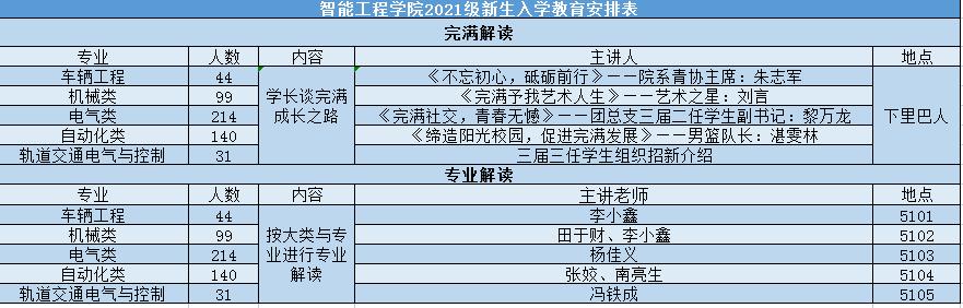 为使2021级新生快速适应移通生活,智能工程学院于9月对2021级新生(含专升本)进行全面扎实的新生入学教育系列活动。系列活动分为完满解读、专业解读、辅导员与班导师入学教育三大方面。覆盖了1200多名新生,共计16场次。