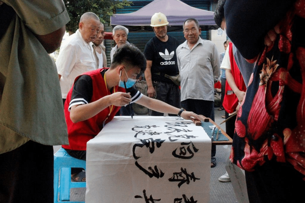 7月3日,“青春向党”红色筑梦队遇上了思居村的乡村集市,周围好几个村的村民在这一天都会进行集市交易,场面十分热闹。团队成员也亲自参与其中,在现场开展书法书写、书法展示活动,前来围观的群众达500余人。