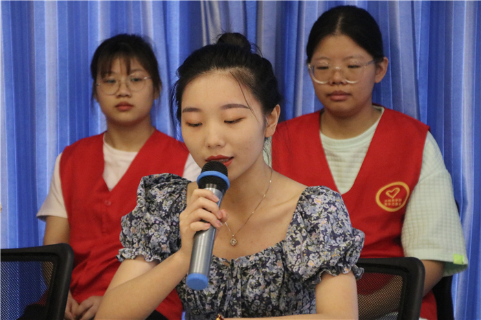 我院志愿服务指导老师曾玉娇作为“三下乡”社会实践教师代表发言,她介绍:“本次我院推出了以‘承非遗文化·促民族团结’为主题的磨盘石文化艺术服务团,和以‘攀东南之巅·探鲛人风采’为主题的旗号岭乡村振兴实践团。”她提到,三下乡暑期活动是一场身与心的修行,学院鼓励大家积极参与社会实践,在实践中坚持“学而信、学而思、学而行”,她希望同学们“带着问题出发、带着思考实践、带着收获回家”。曾老师的期许振奋人心,感染了在场的每一个人。