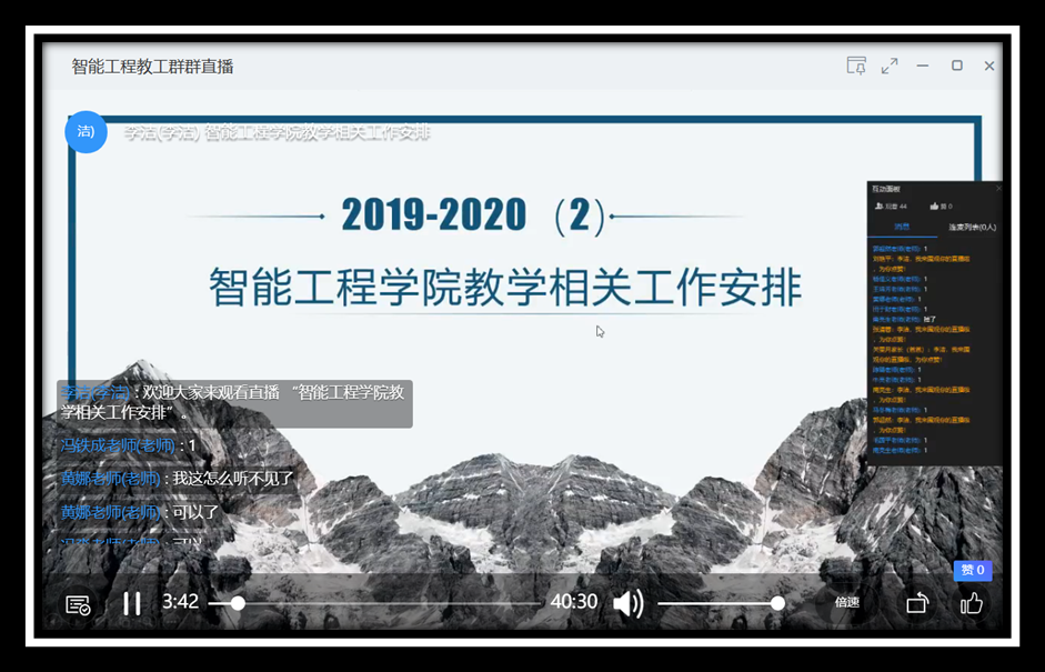 不因疫情弃学习,不因困难不进取。通过一周的试运行教学,智能工程老师们理清了试运行期间可能遇到的问题,思考了相应解决方案,并通过与学生交流、调研,最终确定了正式在线教学期间的授课模式:“PPT直播授课+翻转课堂”混合式教学模式,即“MOOC+PPT网络直播”教学模式。