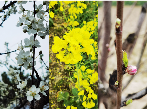 上午9点,同学们集合完毕,随老师一同坐车到四桥。步行穿过四桥,走上原生态的乡间小路,耳畔边不再响起汽车鸣笛的声音,而是家禽的鸣叫声。道路两旁能望见大片大片的金黄油菜花、雪白的梨花、绚烂的桃花,淡淡的花香沁人心脾,令人心旷神怡。走在路上,偶有小羊羔、小奶狗闯入我们的视线,同学们驻足与它们打招呼,为它投食,好不欢快。