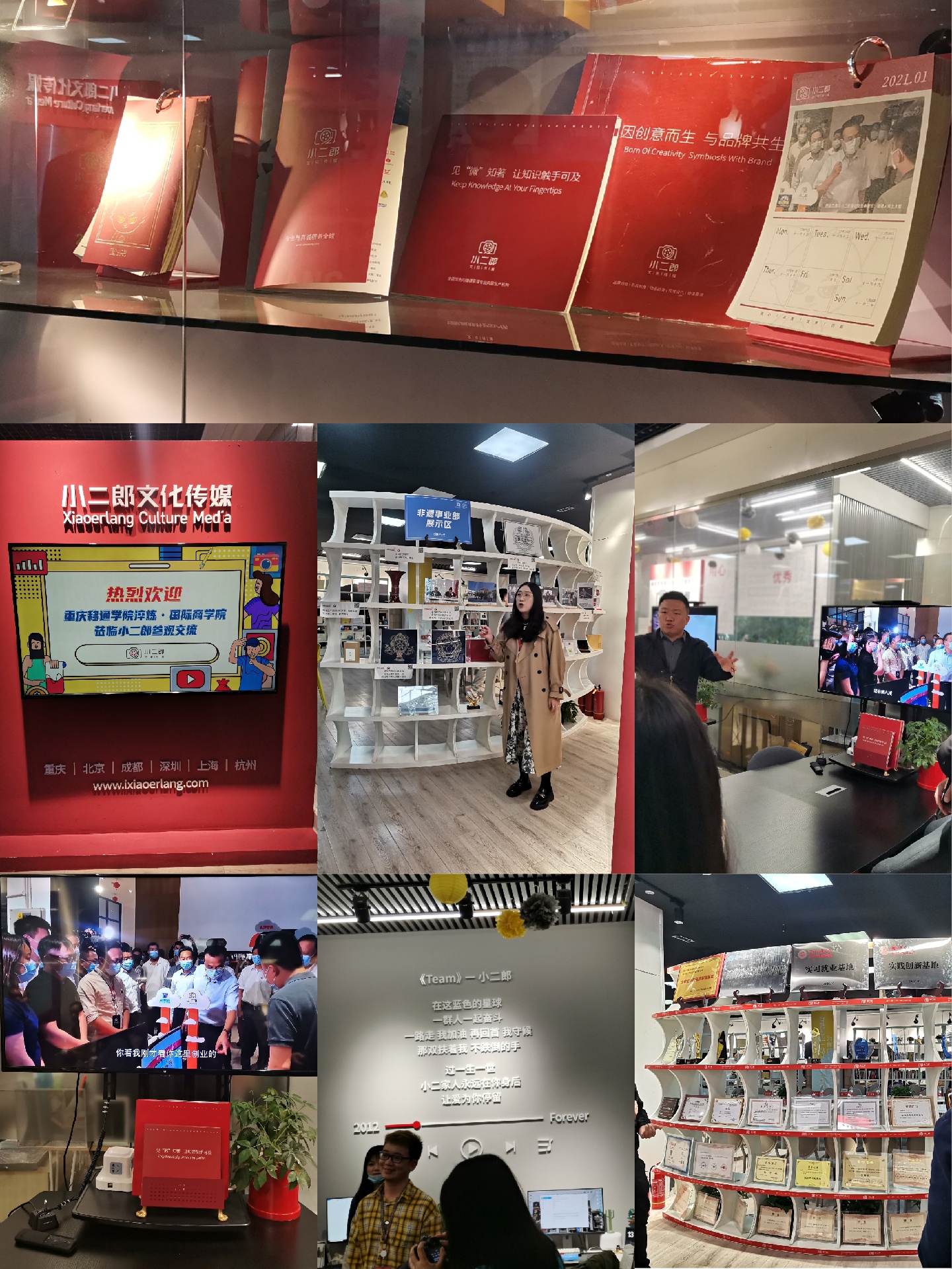 首先,小二郎人资行政综合部总监彭艺带领大家参观了小二郎文创柜,文创柜中放着各种小二郎的文创作品,它们见证了“小二人”的每个春秋冬夏;然后,小二郎的中国非物质文化遗产推广人兰心为大家介绍了小二郎的非物质文化遗产推广项目,包括小二郎携手“苏绣皇后”姚建萍老师策划“绣党徽,传承共产主义理想”献礼建党100周年主题活动,以及加入“数字非遗基因存储库”项目计划等,还诚邀我校对非物质文化遗产推广感兴趣的同学加入。紧接着,大家观看了李克强总理与小二郎职员亲切交流画面以及疫情下小二郎的家庭式年会短片,归属感、家文化、尊重与关怀、真情与温暖的企业文化和团队氛围充斥其间,大家因为同样的理想聚在一起,因光而遇,追光而行。参观环节进行到最后,我们来到了小二郎的办公区,有摆放着小二郎无数荣誉的陈列架,有一群怀揣梦想的“小二人”。