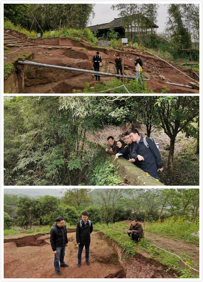 钓鱼城历史文化研究中心的老师们与三位同学开展了亲切交谈,了解他们在这里的工作和生活情况。王胜利先生给老师们介绍了钓鱼城范家堰遗址考古发掘情况、最新进展以及钓鱼城范家堰遗址本体加固与保护展示项目进展情况。通过跟现场考古人员交流得知,范家堰及其周边遗址远比当初估计的规模更大,随着发掘的逐步深入,许多对钓鱼城的旧有观念和认识可能有一个突破性、甚至的颠覆性的重建。比如过去认定是宋代钓鱼城屯田区的区域现在初步判断有大量的建筑痕迹。冯懿老师感慨:“如果这一判断最终得到考古证实的话,我们在教学中一直疑惑的钓鱼城战时经济如何运转的问题可能有一个新突破。明代《合州志》中‘春则出屯田野,秋则收粮运薪’这句话就会有新的解释。而建筑面积的扩大、屯田区域的重新划定等问题对宋代钓鱼城整个经济规模、内部管理、战时运转等议题都有极大影响。钓鱼城真是值得反复考察。”