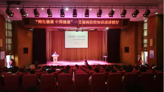 11月19日,在下里巴人剧场开展了一场“师生健康 中国健康”——艾滋病防控知识巡讲校园行专题培训,本次培训邀请到合川区疾控中心性病艾滋病科长杨恩泽老师。通过本次培训,加强了同学们远离艾滋,珍爱生命的观念。