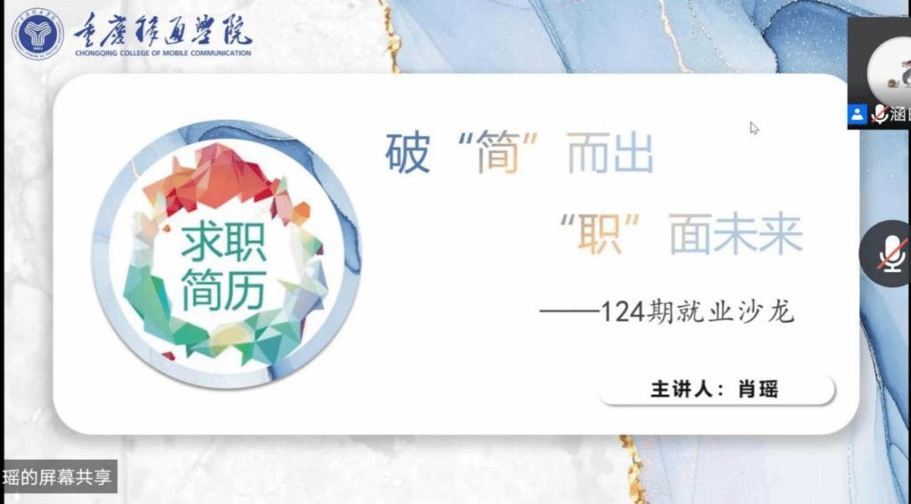 “暑期就业服务依然不打烊”。为提高我校学子简历制作能力,2022年7月13日16:00,由就业创业指导与服务中心主办的“破简而出,职面未来”——第124期就业沙龙活动在线上进行。
