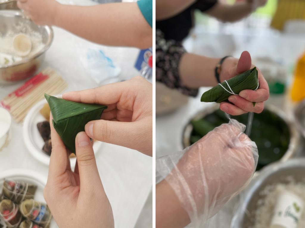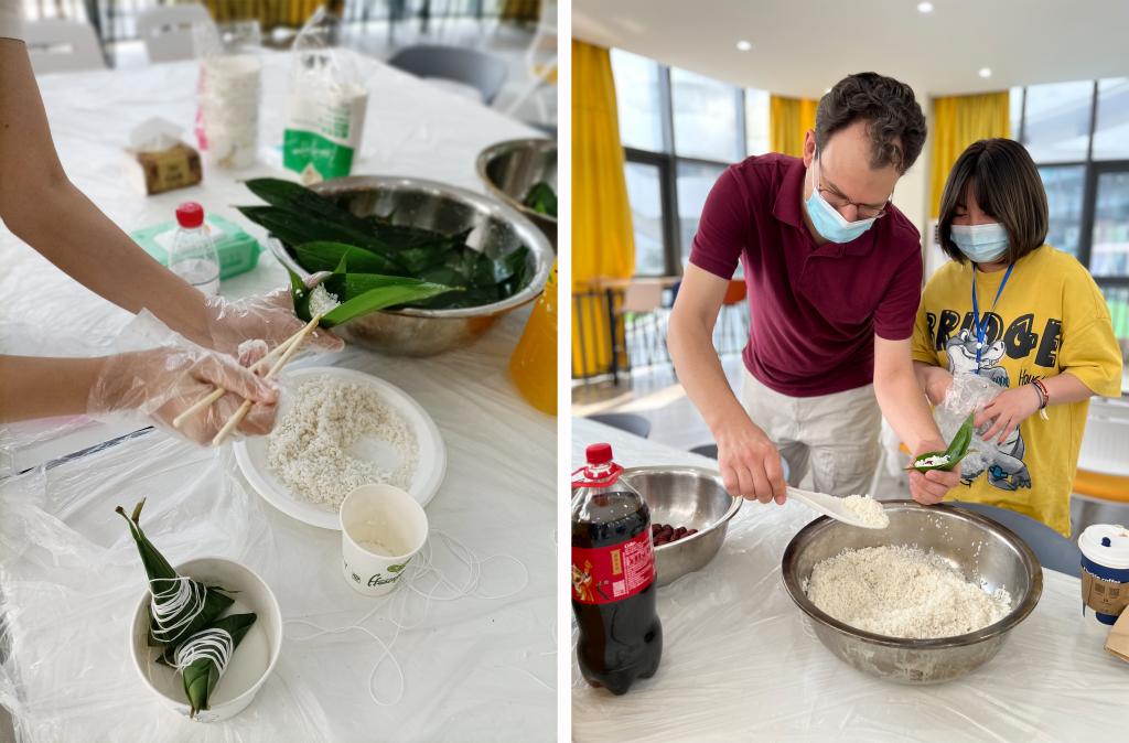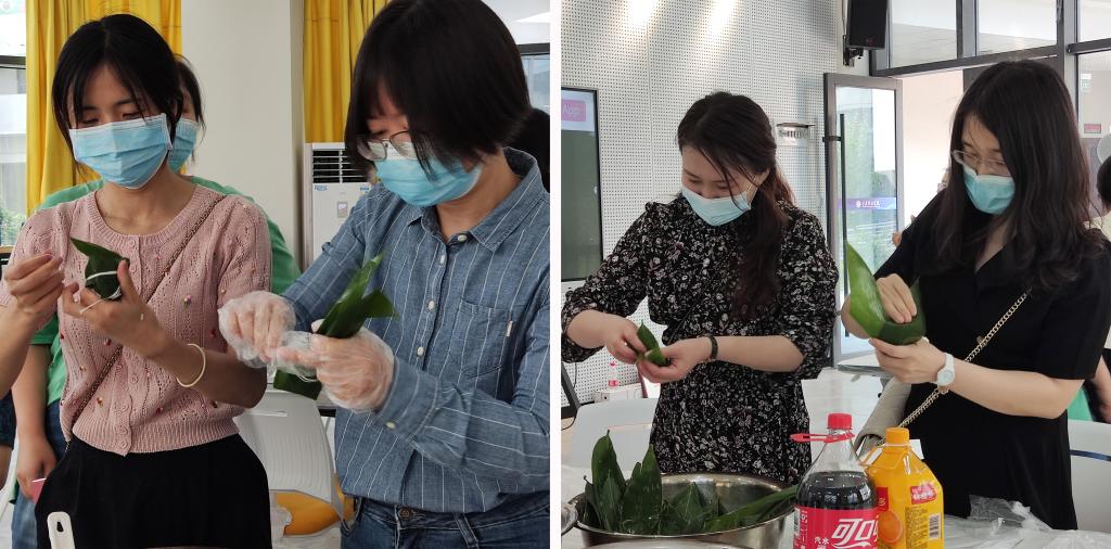 活动伊始,主持人首先向在场的老师们简单的介绍了端午节的起源历史以及相关的习俗文化。同学与老师也分享起了自己切身经历的端午故事。随着对端午节文化内涵的深入了解,活动也逐渐步入正题——包粽子、品粽子。
