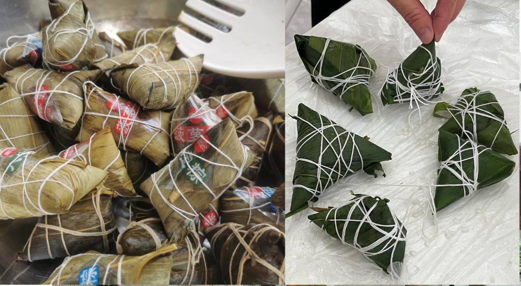 随着一个个精巧可爱的粽子铺满了桌面,看着锅内沸腾的热水不断泛着气泡,一个又一个小粽子开始下了锅进行闷煮。漫长的等待时间在师生们愉快的交流中快速地度过。软糯鲜香的粽子引得现场师生们的一片赞扬,大家辛苦的劳动成果也得到了美好的认证。