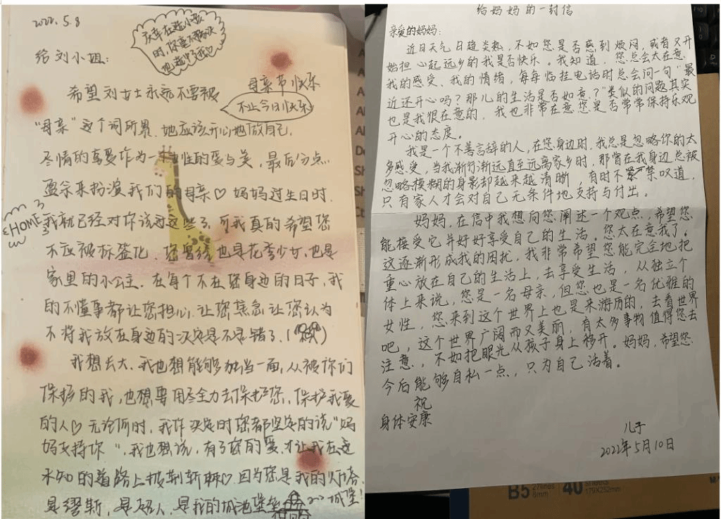 活动发布便受到同学们的广泛欢迎。在信件和感恩卡上,记录着一位位学子对母亲的挂念和祝福之语。精心制作的感恩卡,充满温情的文字,也吸引到更多的同学加入进来。