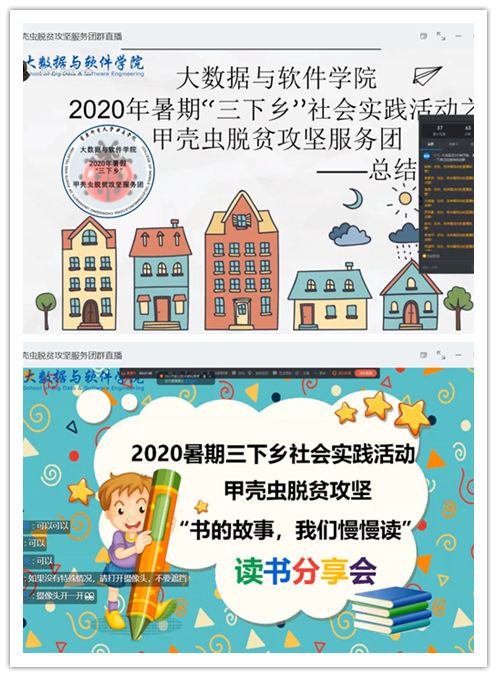 时光,无比柔软,见证着经历的过往,岁月,沧桑依旧,沉淀着生命中的那些悲欢离合。转眼间2020年大数据与软件学院暑期“三下乡”甲壳虫脱贫攻坚服务团队的帮扶工作已渐入尾声,2020年7月13日下午16:20志愿服务版块指导老师李婷老师带领甲壳虫团队与孩子们开展了总结交流会之明天会更好活动,此次活动分为读书分享会、志愿回顾、团队收获、嘉宾总结四个流程。