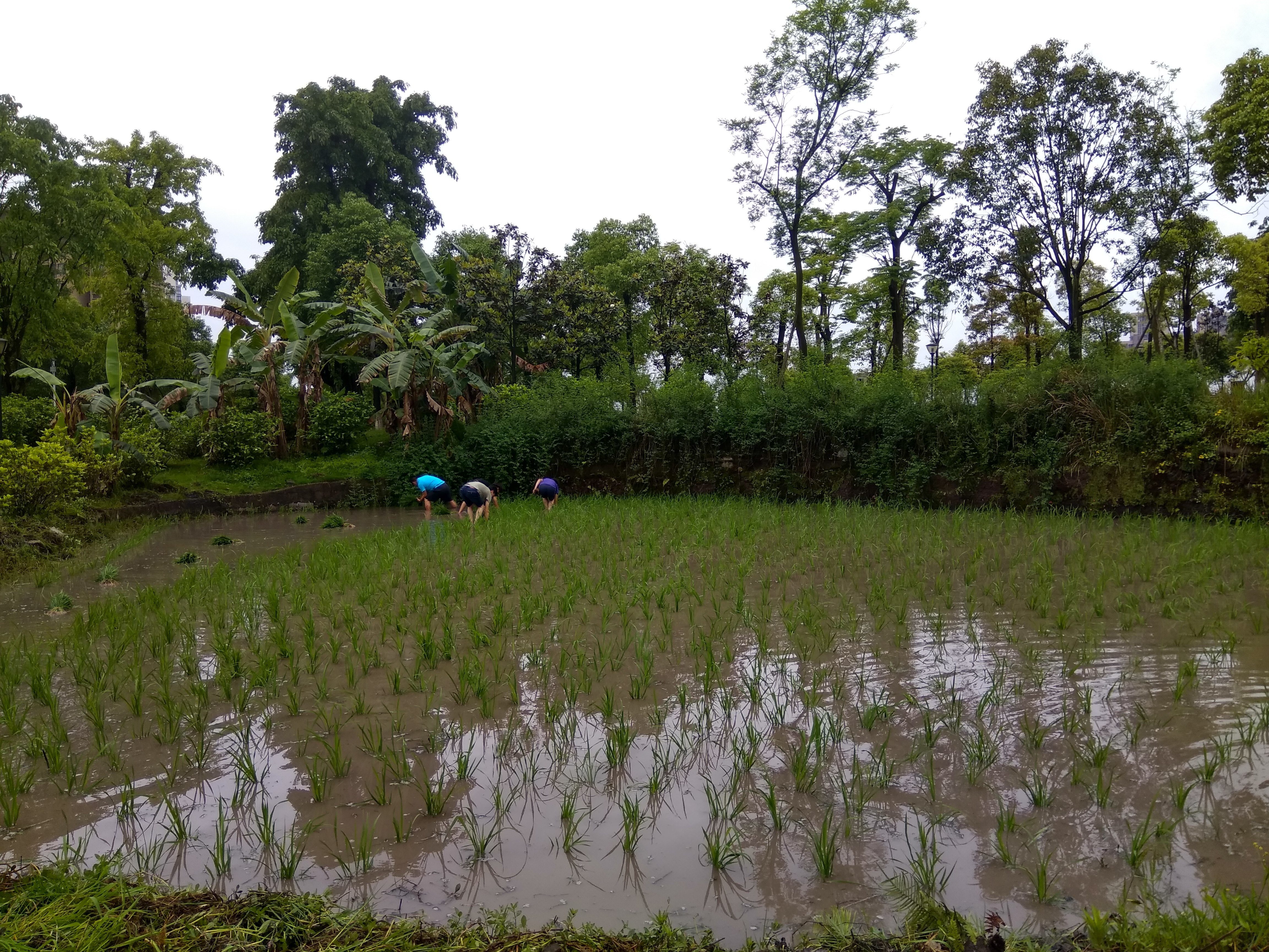 听学长说,远景农场的水稻田从2015年起开始种植,从一开始找相关的种植指导老师请教、学习再到2016年理论小讲堂的理论提升,至今已是第三次种植,第三次种植是经历,是磨练更是成长,有经验的学长、学姐一边带领我们下田,一边给我们教授种植水稻的技术要领,俨然一个可以回答你任何水稻种植问题的“老农民”!心中不由得一阵敬佩之情油然而生。