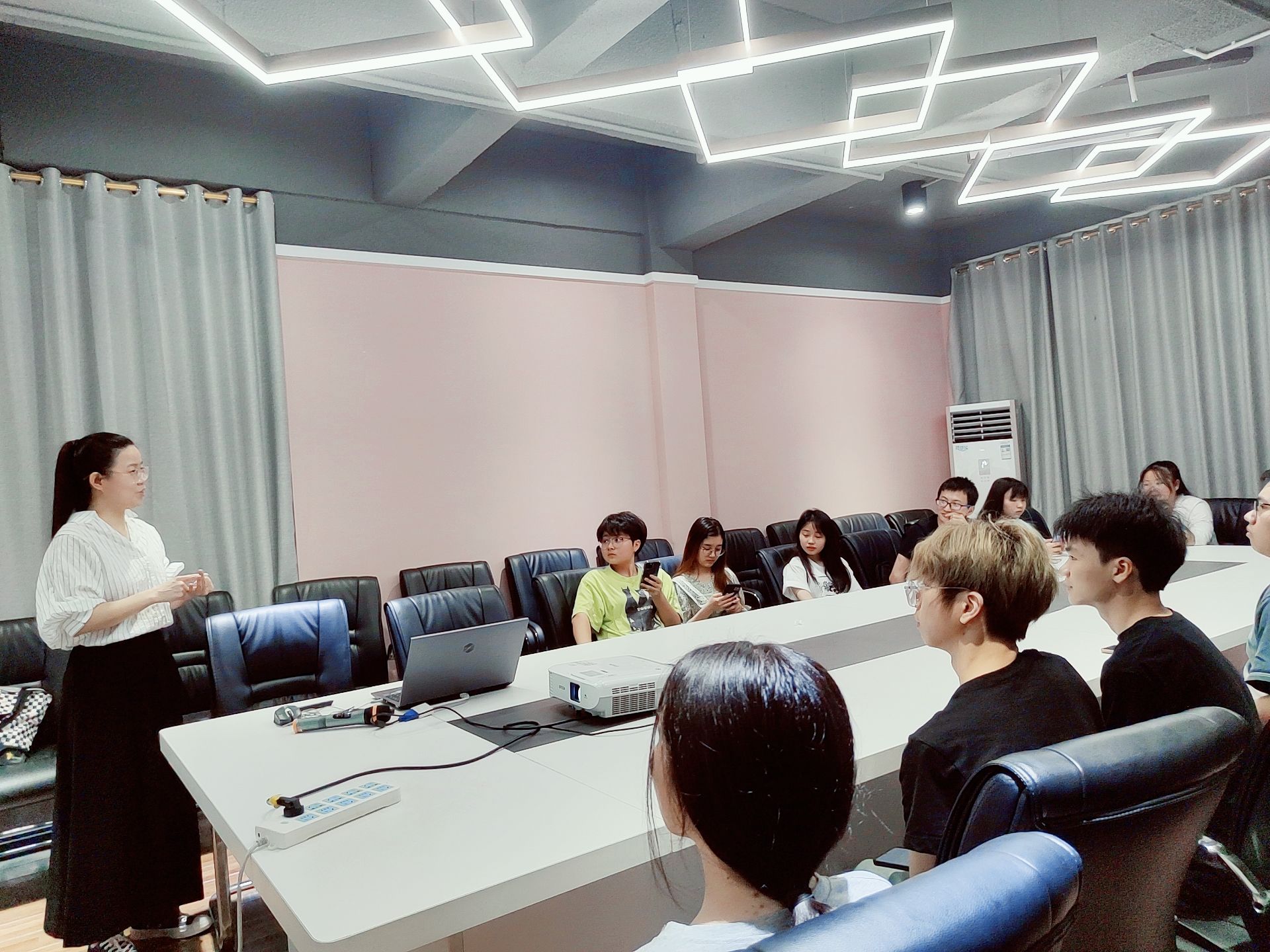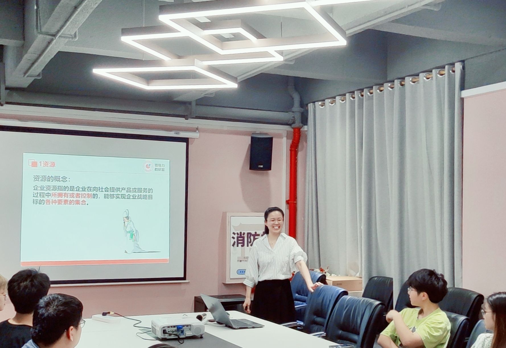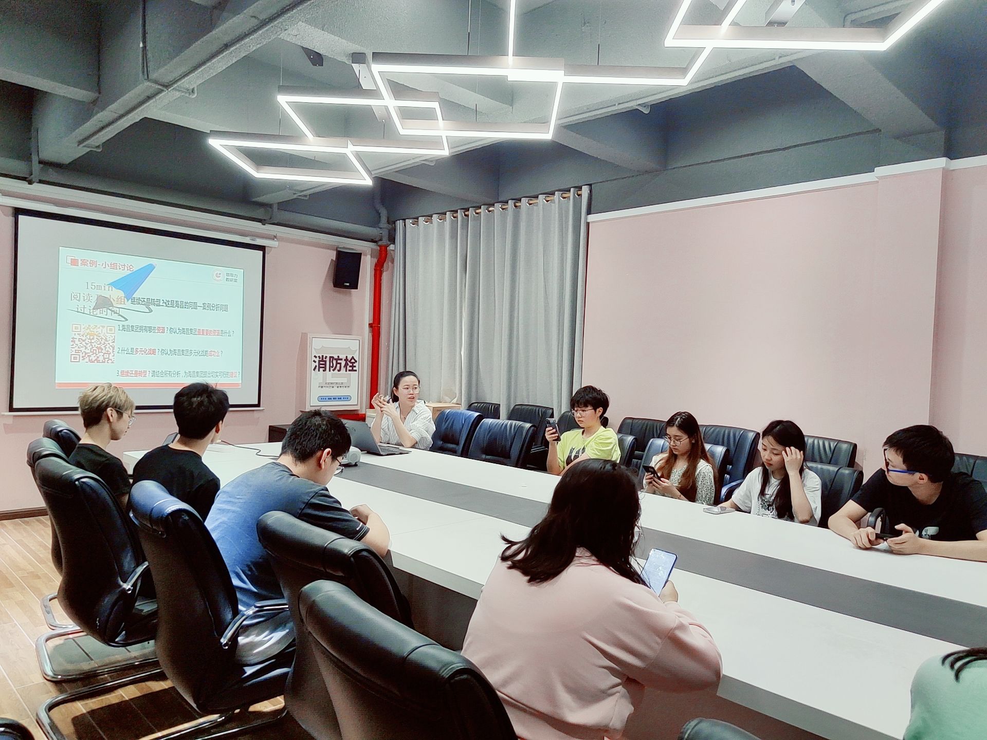 本次研讨会冯丽丽老师以海昌集团为对象,带领同学们从中小企业发展、内外部环境、多元化战略等多个维度入手,分析探究了“互联网+”时代的商业新生态,解析了商业案例中的关键经验,分享了如何利用多元化战略和商业智慧,应对当前的市场挑战。在研讨期间,学生们以小组形式积极互动,提问和分享自己对商业经验和知识的理解。