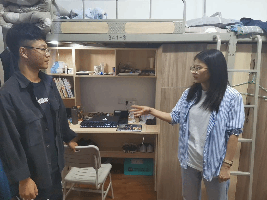 10月8日晚21点15分,我校智能工程学院权益部在院级领导、老师的带领下进行本学期第一次寝室走访活动。