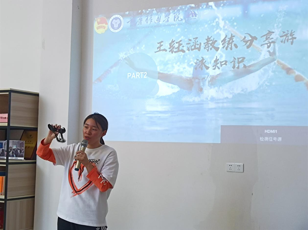 “倾听水之语,感受鱼之乐”这无疑是我们游泳时的乐趣,当然享受乐趣的前提是我们也要好好了解游泳的相关知识。2021年10月20日中午12:30外国语学院学生会体育协会在天渠玻璃房举办外国语学院第三届游泳兴趣圈。我们请到了校女子游泳队教练王钰涵和竞体铁人三项教练李游来为同学们讲解——蛙泳的基本知识。老师和同学们通过互动的方式让同学们更好的知道了泳前的准备事项,更好地了解游泳这项运动。