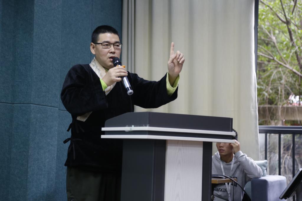 家风,是建立在家庭、家族、宗族文化基础之上的血脉认同,是建立在华夏根亲文化之上的集体认同,是每个个体成长的精神足印;家风,是一个家族代代相传沿袭下来的体现家族成员精神风貌、道德品质、审美格调和整体气质的家族文化风格。家风,对一个家族的传承,一个民族的发展都起着重要的影响。入驻仪式结束后,由重庆市公共图书馆讲座联盟推荐的蒋泷峰先生为同学们开展了以《寻找回家的路·孝慈仁爱与家国同构》为题的讲座。蒋泷峰先生是姓氏文化研究学者,曾从事多年教育工作。其专业知识性全面、条理清晰的“注重家庭·注重家教·注重家风”中国传统家风传承系列讲解深受同学们的喜爱,同学们从他的讲座中了解中华民族优秀传统文化,认识中国姓氏文化,重拾每个家庭的家风家教,重塑礼仪之邦的民族自信心、自尊心,增强民族归属感和民族自豪感。