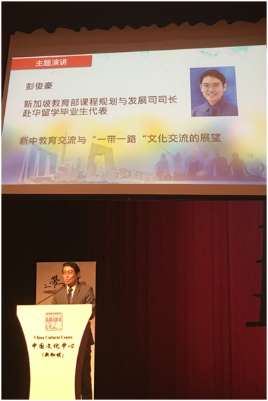 现任新加坡教育部课程规划与发展司司长的彭俊豪先生提到,他有机会到北大进行浸儒交流,被北大“一塔湖图”的人文景观所深深吸引(所谓的“一塔湖图”就是北大著名的三个地标,博雅塔、未名湖和北大图书馆),这样的一种游学浸儒,对新加坡学生来说是非常难能可贵的,从留学时期就能树立一种人文关怀,对全人教育和陶冶性情有着非常重要的影响,他很高兴看到语文课程的浸儒活动从1993年他当学生时新加坡政府安排到中国浸儒,直到今天他在教育部工作,23年来始终没有间断过,这可说是中新两地人文交流的一个亮点,而正在此时也有一批语文特选课程的学生正在上海进行交流,他后来工作的时候也非常有幸再度到中国学习,2008年他首选派到到中国广西举办的亚西安青年领袖培训班学习课程,另一次则是受新加坡教委委派到北京中国国家教育行政学院学习参加全国基础教育改革的动态研修班,在中国广西学习的是一次难得的经验,当时走访了广西的各地,当年虽然未有“一带一路”,但是已经深深的感受到了中国的内陆城市,以及西部大开发的巨大潜力,而今后随着海上丝绸之路的构建,相信它在经济方面将扮演更重要的角色,当时参加领袖学习的除了新加坡还有其他的东南亚国家,每到各国的国庆日,就会拿出该国的特色食品和歌曲,让他深深的体会到东南亚有着丰富的语言文化内涵和多元丰富的风土人情,一带一路提供契机,加深各国的文化交流,并把各国的文化种子散播到各地,丰富人类整体的教育文化精神,2014年北京蹲点学习,则让他对中国目前教育和现状和未来发展挑战以及教育改革的方向有了更好的了解,为了落实立德树人的根本任务,他看到中国教育更重视传统文化提升文化自觉,也见证了中国的教育正积极的推进现代化进程,汲取国外先进的教学理念和资讯科技来提升教学技术,中新两地都很重视素质教育和现代化管理,他觉得有许多可以借鉴学习的地方,这次课程更难得的是让他有机会与来自中国各省市的100多位校长和校领导进行学习和交流,能够聆听来自全国各省份教育同行们分享各自的教育特色与办学理念,可说是获益不浅。