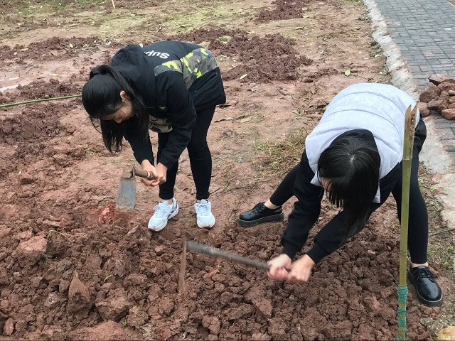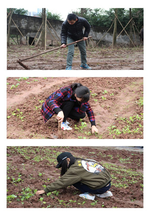 有多少人还记得锄头的模样,又有多少人会使用;有多少人会判断种子的好坏,又有多少人会种植;有多少人能清楚土地的营养,又有多少人会区分?这是时代带给我们的迷惑,值得提起的是,今天耕种的同学,都是合格的“种植者”,他们没有为“脏、臭”而苦恼,与最真实的生活亲近,用锄头为种子开垦出新的“居所”,开辟出排水沟,搬出石块,用手把一粒粒种子种进“梦中”。这些简单的动作却是最动人,没人吵闹,各自认真地劳动着,享受着生活的吃苦耐劳和成长进步。