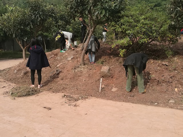 有多少人还记得锄头的模样,又有多少人会使用;有多少人会判断种子的好坏,又有多少人会种植;有多少人能清楚土地的营养,又有多少人会区分?这是时代带给我们的迷惑,值得提起的是。今天耕种的同学,都是合格的“种植者”,他们没有为稀泥而苦恼,与泥土亲近。用锄头为种子开垦出新的居所,开辟出排水沟,捡出石块,用手把一粒粒种子放进坑里。这些简单的动作却是最动人,没人吵闹,各自忙着自己的活儿。