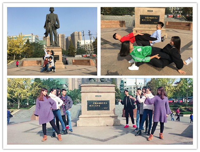 第二任务,每个小组在卢作孚广场拍摄5张创意合照,看似简单的活动却让队员们绞尽脑汁,又是一番思想爆炸,在研讨中,各队逐渐拿定了主意开始拍摄照片,没想到拍照也并不简单,更是一场智力和体力的考验,正如图片,逗霸队队员真可谓身体力行,其他成员也展现了他们最美的一面拍摄了自己独有风格的照片。