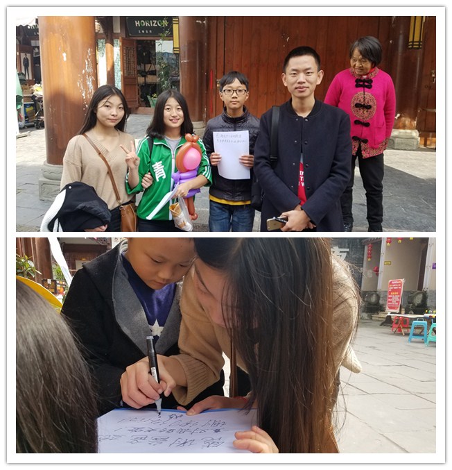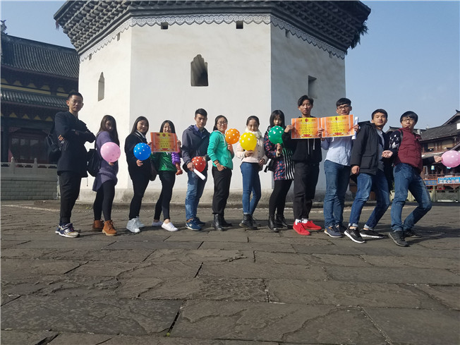 又是一段湖光伴路,穿过现代建筑,我们到达了我们此行的终点站——文峰古街。趁着感恩节的余温,在这里我们开展了以收集感恩照片为主题的活动,每个小组需要邀请十组路人,在白纸上写下自己认为最暖人心田的感恩话语,规定时间内以完成度积分。这个活动不仅提醒我们要多多关注身边的温暖,同时也考验了大家的表达和沟通能力。感恩记在心里,是你是我,更是对父母对他人对生活的满满感激。