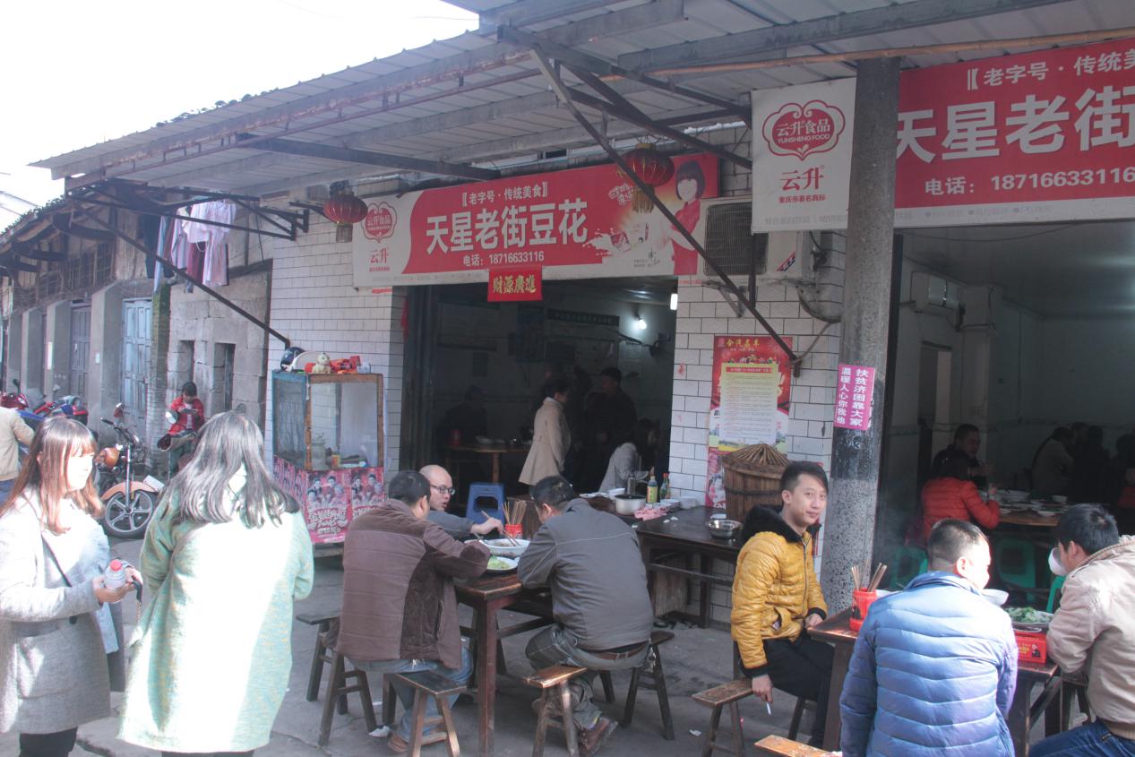 一路走来,街道两旁的店铺大都关闭着,曾经的店铺招牌也因为时间的关系老化掉了,令人庆幸的是,还有一家开设于80年代的五金店铺,见证了这条老街的兴衰,和这家五金铺一样坚强存在的还有一家民国时的豆花店,但和五金铺的萧条完全不同,这里一到中午,来这里光顾的客人络绎不绝,他们品尝的不只是一种味道,更是一种记忆。