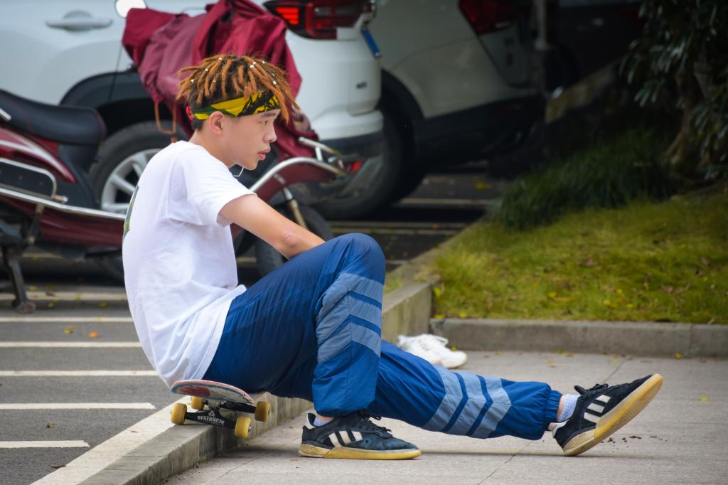 诶诶诶?这不就是刚才那位滑板少年吗?