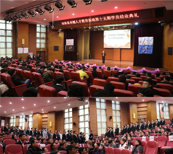 有时候,一段记忆足以让人缱绻一辈子。双体系卓越人才教育基地第十五期学员结业典礼于2019年1月8日下午2点30分在下里巴人剧场举行。重庆邮电大学移通学院校长张德民教授,双体系创始人、深圳壹联信息科技有限公司副总裁吕永生老师,深圳壹联信息科技有限公司CEO刘良玮老师,重庆邮电大学移通学院校长助理周伟老师,山西农业大学信息学院双体系及重庆邮电大学移通学院双体系全体教师参加了此次典礼。