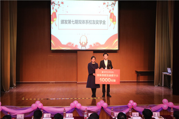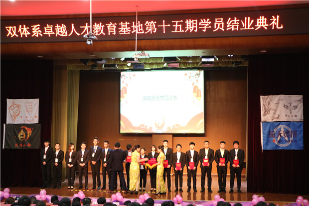 伴随着典礼的进程,双体系校友会副会长郭淼老师为十五期擎天三部颁发了“双体系校友奖学金”,这份奖学金在双体人眼中看来不仅仅是一笔钱,更是一种肯定、一种收获、一份鼓励、一份感恩。