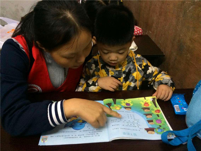 小e到达“四点半课堂”地点时,远远就看见了关智恩小朋友一人正端端正正的坐在石板凳上静静的写着作业,小e们都不愿打扰关智恩小朋友,没有发出一丝声响。关智恩小朋友好像了听到脚步声,猛地回过头去,见到是小e过来了,微微上翘的嘴角暴露了他的兴奋,高兴的说道:“哥哥姐姐们,你们终于来了,我等你们好久了!”