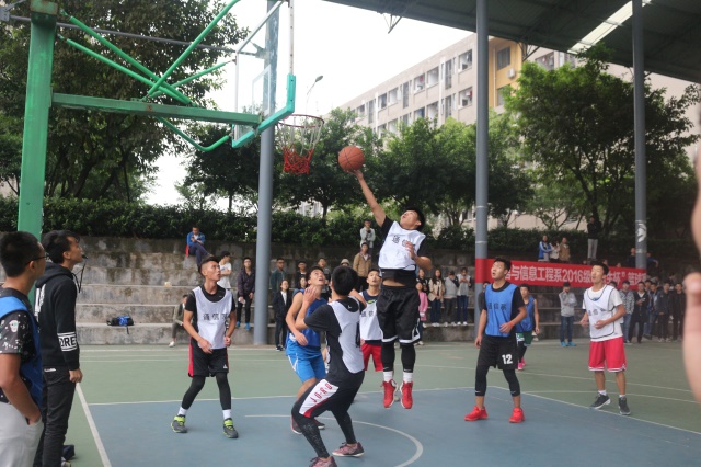 2016年10月11日、13日—14日,中午12:15分,持续3天的通信系2016届“新生杯”篮球赛,终于在10月14号画上完满的句号!比赛是为了提高新生对学校竞技体育参与的积极性,加强同学们的团队意识,增强同学们的体质,让同学们切实的体会到竞技体育带给自身的快乐,我系体育协会 特意举办了第4届“新生杯”比赛。连续一周的阴雨与低温,让同学们早已将厚厚的外套穿在身上,然而在C区篮球场,却有着这样的一群人,他们身着单薄的球衣,手戴颜色鲜艳的护腕,在球场上奔跑、跳跃。