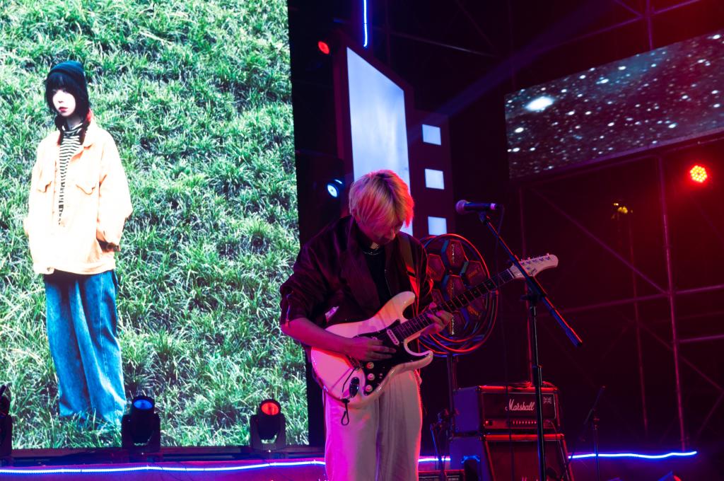 天气愈凉,但音乐节热情澎湃的氛围丝毫未减,摇滚动感的音乐依旧徘徊在演出现场上空。Red tone乐队压轴出场,乐队由一群热爱摇滚乐的成员组成。倾情翻唱Russ的一首《psycho》,瞬间将观众带回记忆深处浪漫的夏天。乐队主唱放声高歌,观众随着节奏同唱,振臂欢呼、旋转跳跃,留下的是尽兴与畅快。