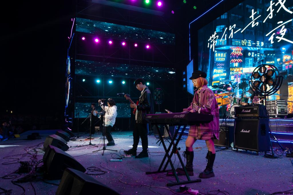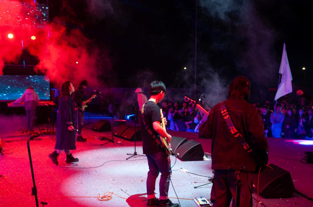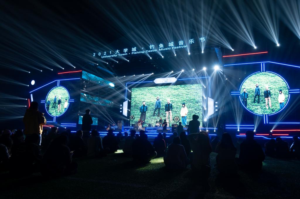 10月25日晚19点整,2021年“大学城·钓鱼城”国际音乐节学生乐队专场盛宴于北校区五人制足球场激情开演。本次音乐节学生乐队专场由学生自发组建的6支乐队组成,十八余首摇滚流行歌曲相继“轰炸”现场,带来长达3个小时的视听盛宴。