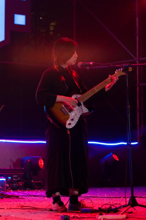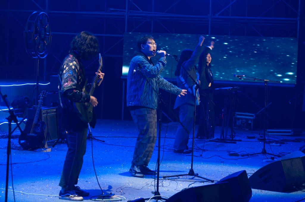 此次音乐节在哑狗乐队精彩的演唱中拉开帷幕。哑狗乐队四位成员具备深厚、扎实的音乐素养,其作品将古典元素与现代风格完美融合。现场一首《迷恋》热情开场,现场气氛瞬间被点燃。《如常》《我们》《巫赌》等音乐在鼓手贝斯手、吉他手多元化的演出下,渐渐将现场活跃起来。乐队演唱时张弛有度,几入仙境的刻意又随意,无词声部鬼斧神工的旋律起伏无不令人赞叹、征服全场。