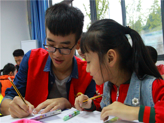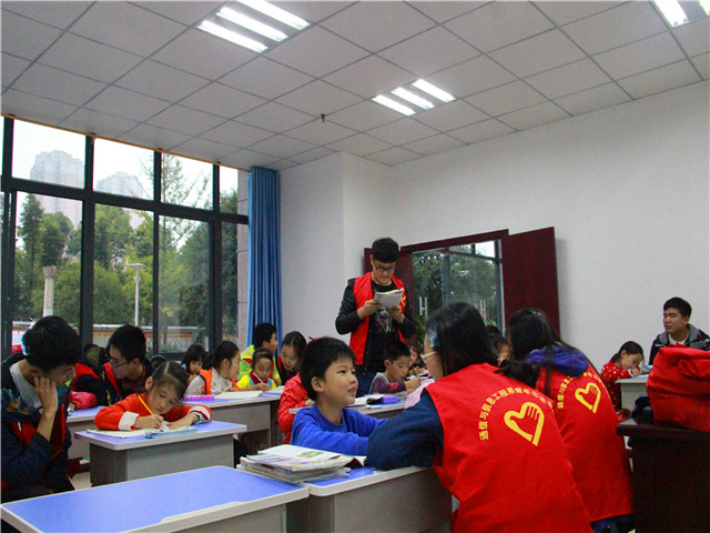 或许是因为第一次去这个活动,内心期待和紧张只可意会不可言传,志愿者们早早地做好了一切准备。提前一晚上准备好了课件,提前到了集合地点。踏着轻快的步伐,志愿者们来到了今天活动的目的地白鹿山。当我们走进白鹿山趣味课堂的教室时,看着一张张稚嫩的笑脸,他们或是友好地冲着我们打招呼,或是害羞地躲在老师身后疑惑地看着我们,这样的小朋友让我们如何不爱。很快,小朋友拿出了作业,志愿者们也迅速地进入了“小老师”的角色。