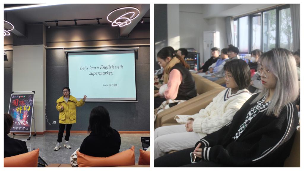 为了便利同学们日后在海外的生活,学院还特别邀请到了钓鱼城科幻学院的孙丽梅老师进行主题分享。孙老师以中外饮食文化差异为切入点带同学们了解了中外文化差异,并用轻松有趣的方式教给同学们一些物品在中英表达上的不同,孙老师别开生面的讲述极大地激发了同学们对外语学习的热情以及对海外留学生活的向往,同学们也在短短的几十分钟内记忆了了大量的单词并表示非常期待未来在海外的学习与发展。