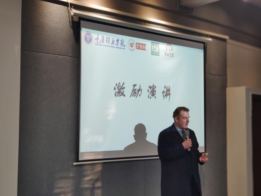接下来外教Mike为学生们发表了激励演讲。他用亲身经历告诉同学们在成长的过程中要勇往直前,不要害怕错误与失败,无论遇到怎样的困难都要相信自己并坚持自己的梦想。他还向同学们分享了成功的秘诀,第一是要制定长期目标,将自己的目光放长远;第二是要主动出击,要主动寻找机会、抓住机会而非等待机会。