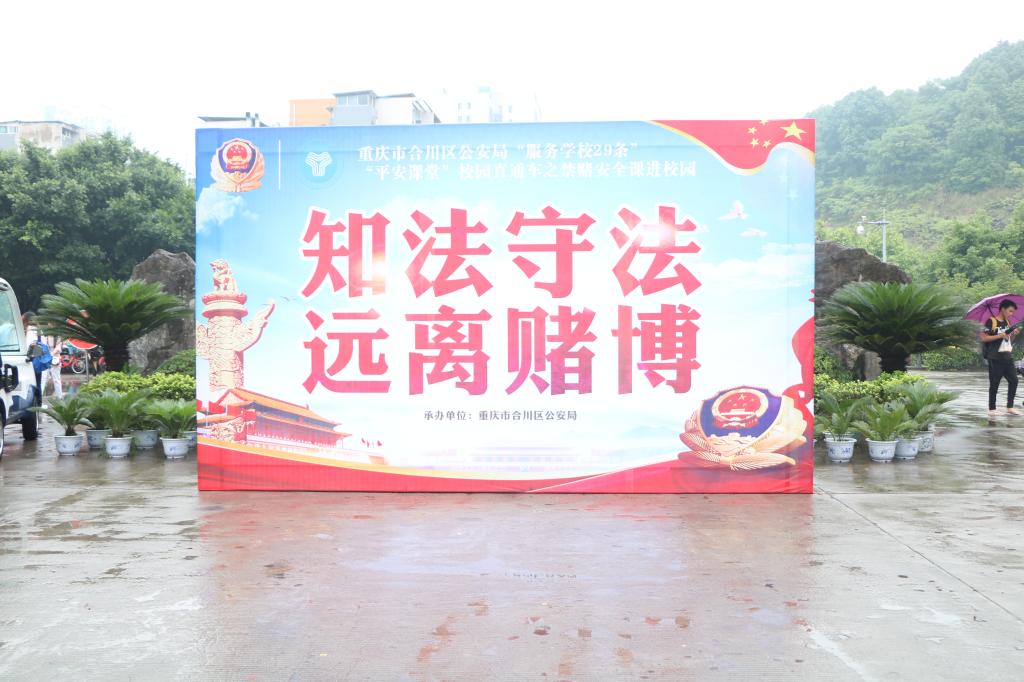 拒绝赌博,从我做起!为进一步加强校园禁赌安全教育宣传,有效提升大学生法治意识和识别防范赌博活动的能力,6月13日上午,重庆市合川区公安局“服务学校29条”“平安课堂”校园直通车之禁赌安全课在我校正校门和一二教广场有序开展。
