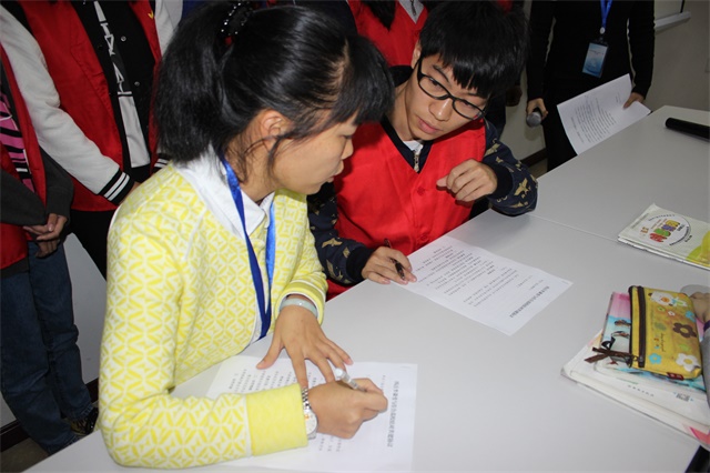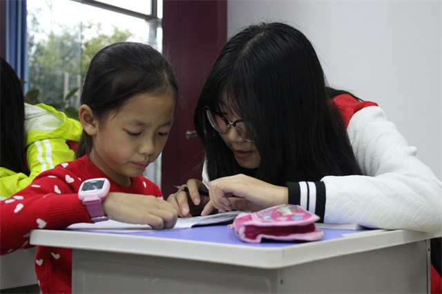 这是一个新的征程,志愿者们经历着许多的第一次。第一次有了即将在摄影机下合作签约的自豪感,第一次有了即将面对小朋友们讲课的紧张感;第一次有了穿“新衣服”的骄傲感,第一次……他们欢快地穿着红衣合影留念,记录美好瞬间;他们积极地讨论各种演讲方案,力求完美表现。于志愿者们而言,这是一次全新的体验。时间就从他们忙碌的身影中穿梭而过。转眼间,小朋友们的下课时间到了,他们接踵而至,在志愿者们的带领下坐上课桌准备写作业。